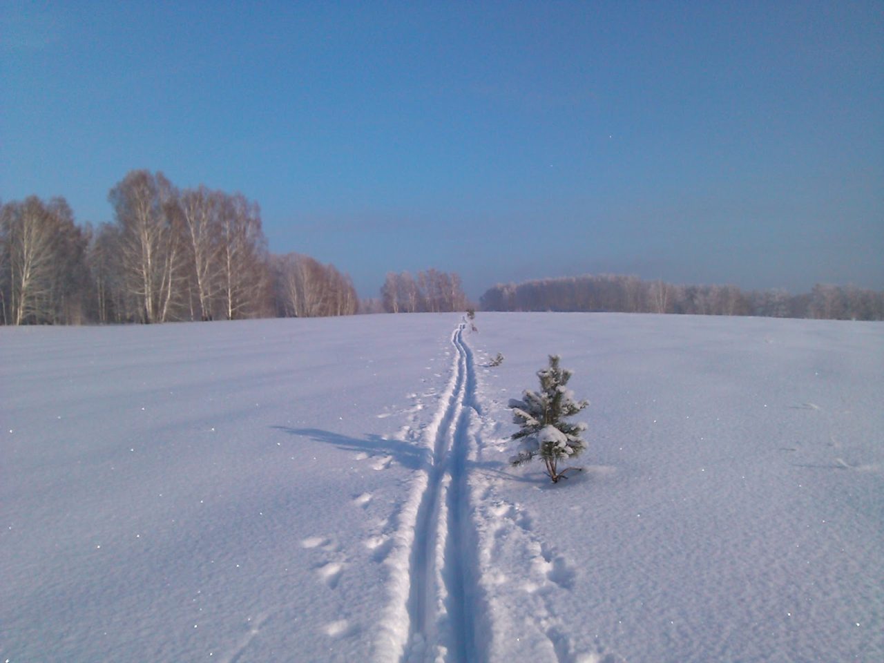 Участковые уполномоченные вышли на подворовый обход местных жителей. Рассматривая возможные пути отхода грабителя, они заметили на поле следы от лыж.