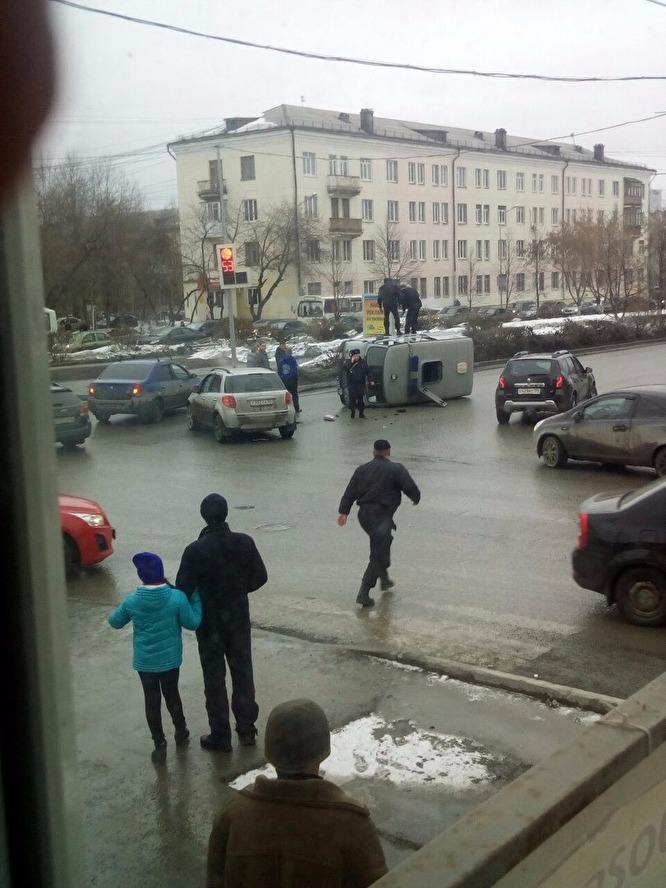 На место происшествия вызывали полицейских, которые попали в аварию на перекрестке: по предварительным данным, их не пропустили другие участники движения, и автомобиль полиции перевернулся. Пострадавших в аварии нет, сообщают очевидцы.