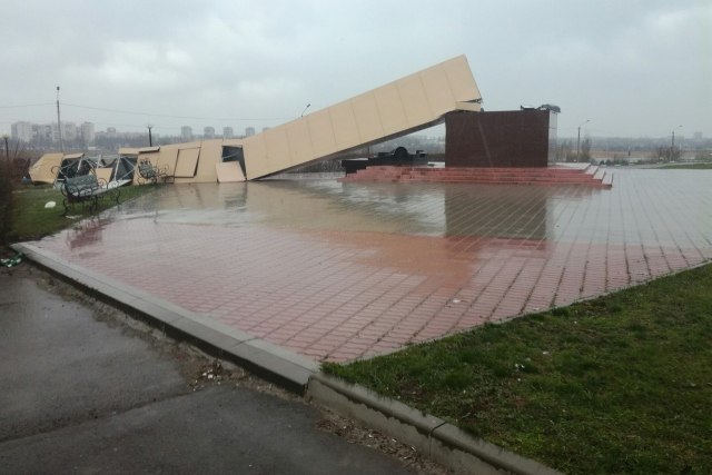 В группе «Это Ростов», посвященной новостям региона, пользователи выкладывают фотографии, на которых порывами ветра сносит крыши и рекламные щиты в центре города.