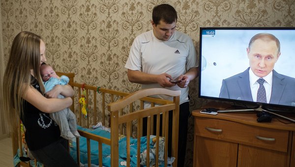 Популярность телевидения продолжает падать (с 62% до 52% за последние два года), но оно остается главным источником новостей о событиях в стране для большинства россиян. На втором месте — интернет-источники, включая информационные сайты, соцсети и блоги (32%), на третьем — разговоры с людьми (8%), газеты (4%) и радио (3%).