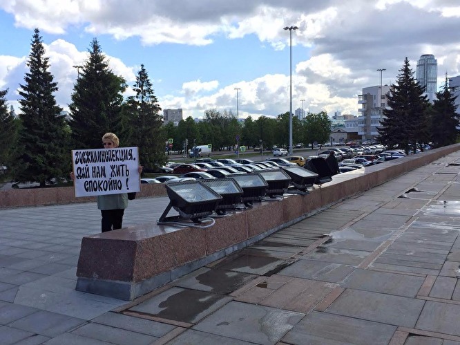 По данным агентства, 9 июля две местные жительницы провели одиночные пикеты рядом с администрацией губернатора, накануне визита в Екатеринбург президента России Владимира Путина. По словам одной из протестующих, после того как она развернула плакат, ее окружили полицейские. В это время вторая женщина свернула плакат, но сотрудники полиции попросили ее подойти поближе, чтобы сфотографировать.