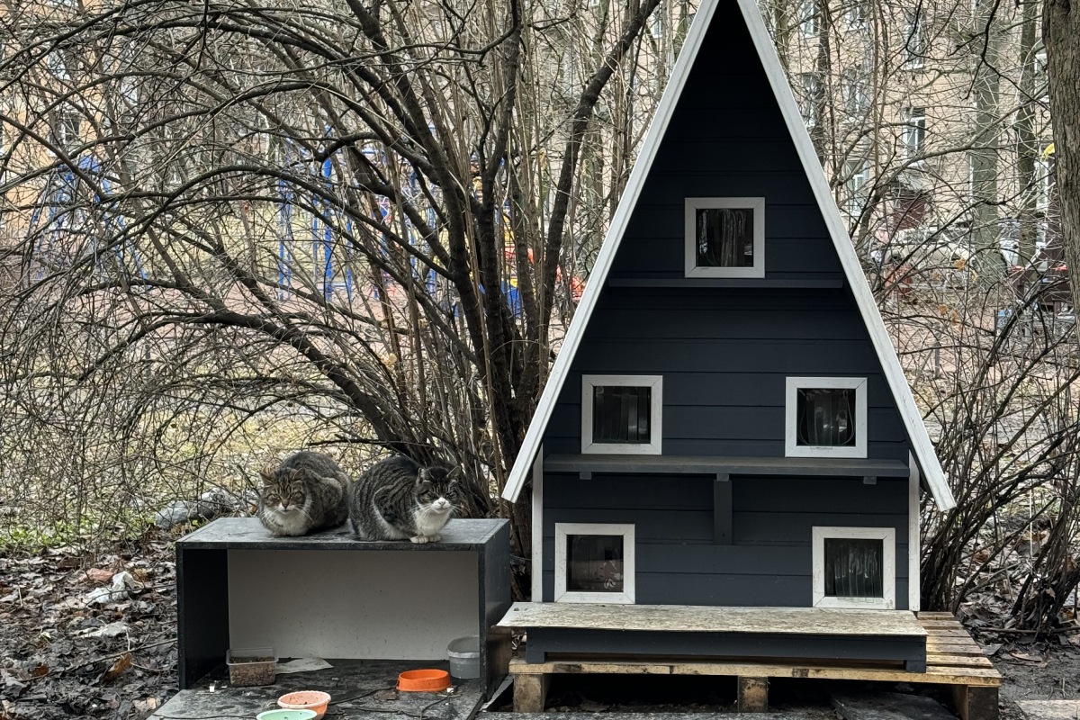 И правда, на следующий день нам привезли и установили домик. Вот так просто. Соседи были в восторге — фотографировали, делились в чатах, подходили, говорили: «Как здорово!» Конечно, были и те, кто возмущался, мол, кошкам это не нужно. Да, в мороз кошки уходят в подвал — в домике нет отопления, но в теплое время года или когда не слишком холодно — они там живут. Едят, спят. Люди приносят корм, ухаживают.